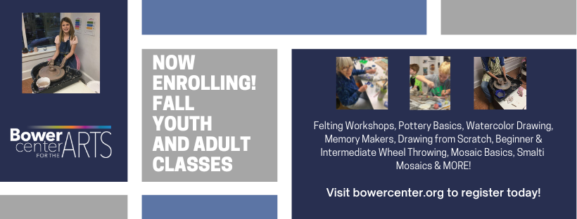 🍂 Discover Your Creativity This Fall! Fall is the perfect time to explore something new at Bower Center for the Arts. Our upcoming schedule is packed with inspiring art classes and workshops for all ages—from hands-on pottery, mosaics and painting to unique felting workshops you won’t find anywhere else. Whether you’re looking to develop your skills, try a new medium, or enjoy a creative afternoon with friends or family, there’s something for everyone. View our full Fall lineup and register today to reserve your spot!