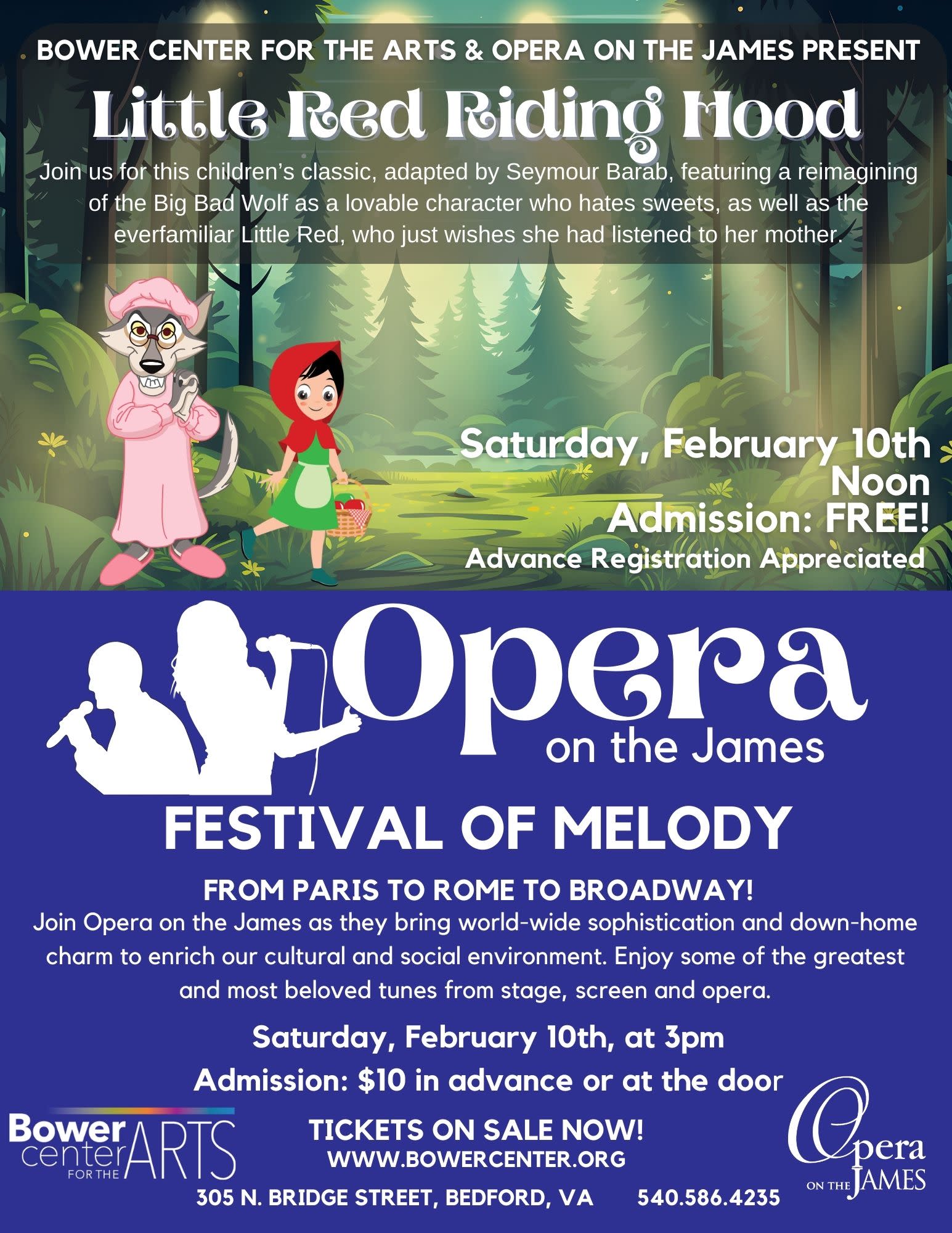 Little Red Riding Hood, a modern retelling of the classic for children from pre-K to 5th grade Followed by Festival of Melody with music from Paris to Rome to Broadway- classics that you're sure to love!
