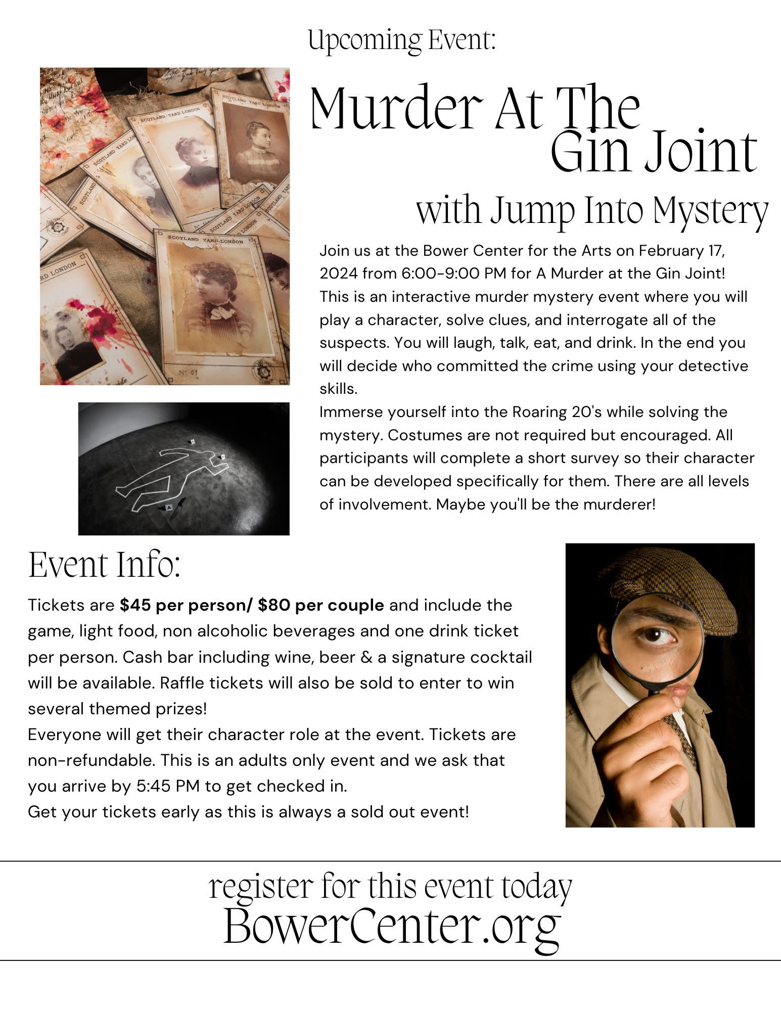 Join us at the Bower Center for the Arts on February 17, 2024 from 6-9PM for