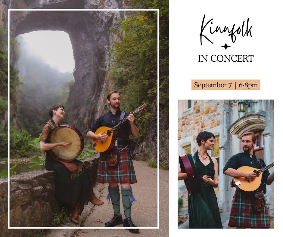 Since forming Kinnfolk in late 2018, the pair have played at festivals and listening rooms throughout Virginia and beyond. Their self-titled debut album dropped on March 7, 2020 (just one week before COVID-19 shut the state down) and they released their first original single, "The Borden Set," later that year. In 2021, Kinnfolk was one of 10 bands--representing 10 countries from across the globe--selected to be part of the inaugural Robinson Emerging Artist Showcase hosted by the Goderich Celtic Roots Festival. As their notoriety has expanded worldwide, their music has been featured on podcasts and radio programs across the globe. The pair recently received a grant from the National Endowment of the Arts and the City of Roanoke to create a body of work exploring the history and folk legends of their town.