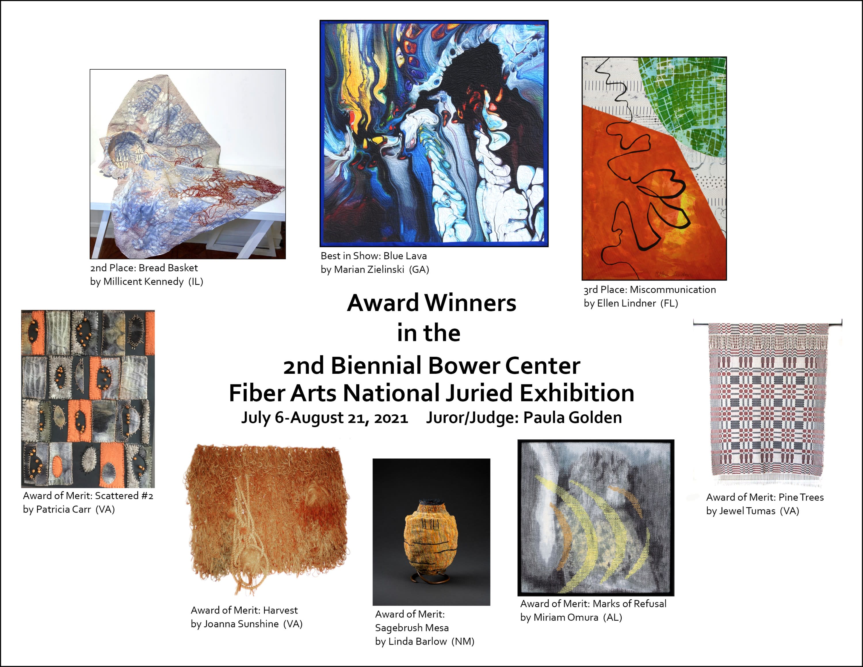 This exhibition is open to all artists over the age of 18. All entries must be original works (no reproductions) and created within the past three years. This exhibit includes all forms of fiber art: functional, wearable, and fine art, original in concept and design, and must not have been created in a class/workshop, or from a kit, and not have been in a previous juried exhibit at Bower Center.
