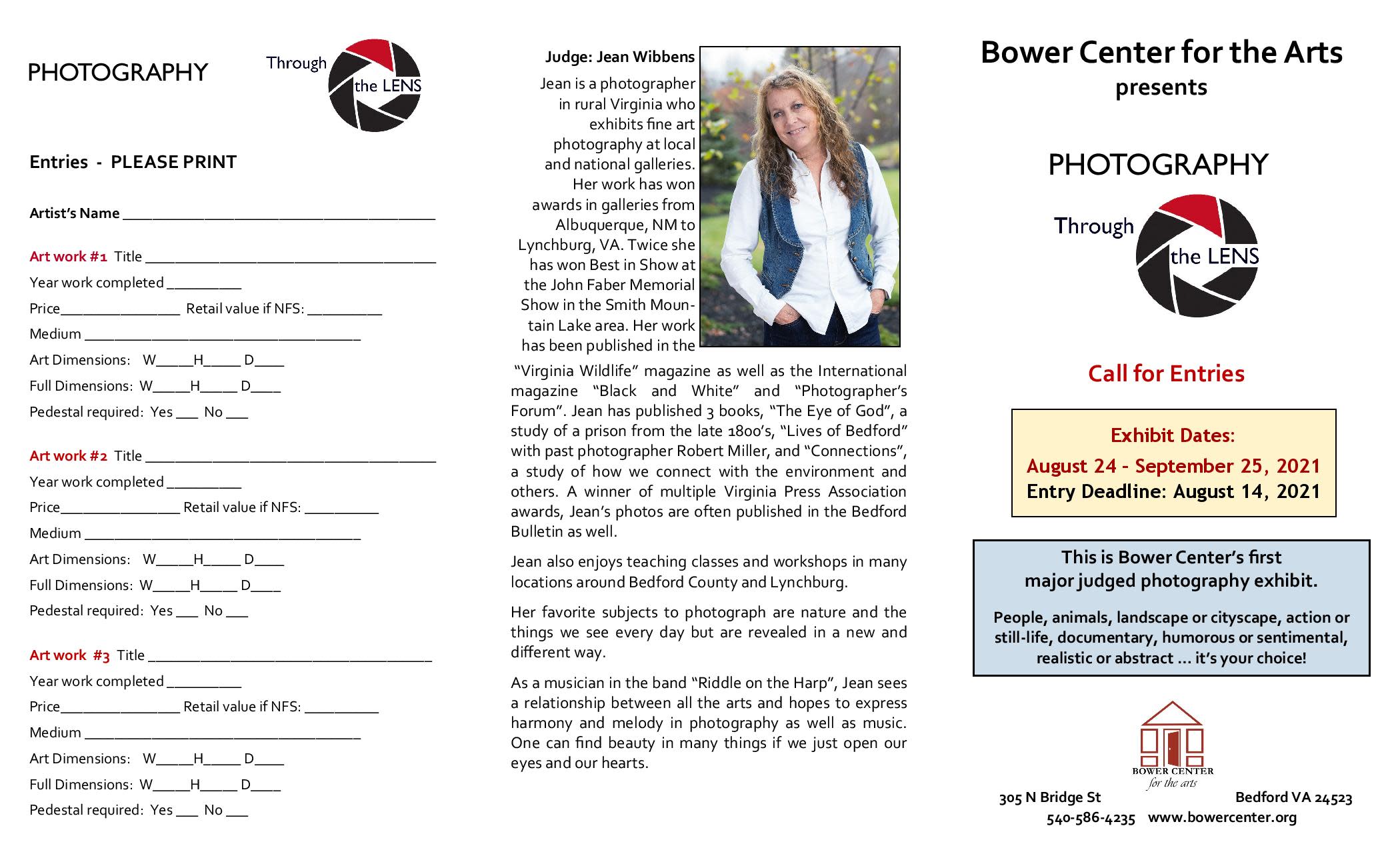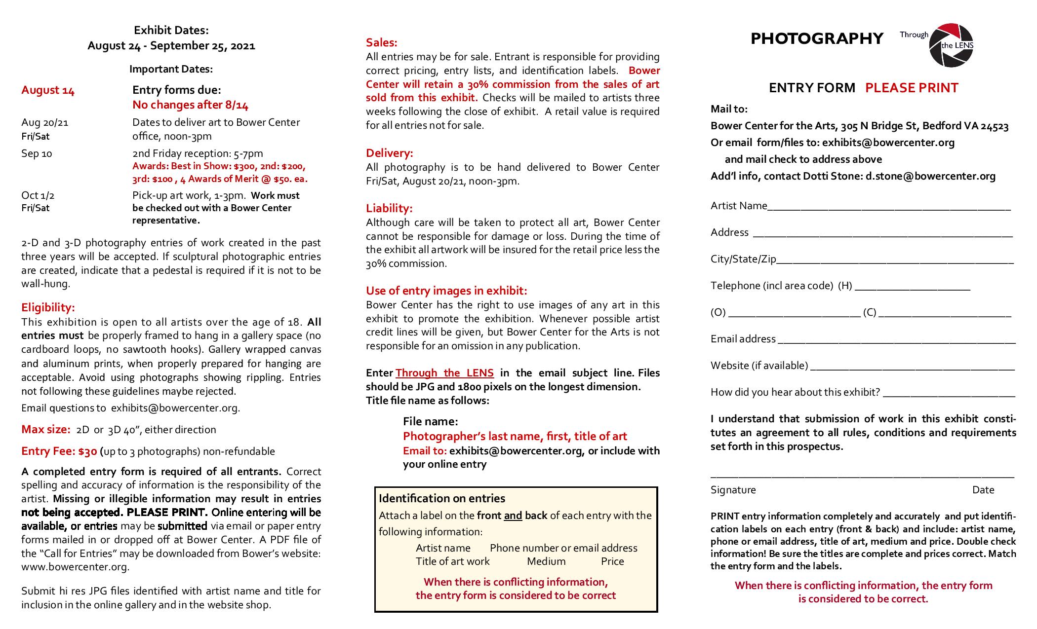 This is the Bower Center's first ever judged photography exhibit. People, animals, landscape or cityscape, action or still-life, documentary, humorous or sentimental, realistic or abstract ... It's your choice!