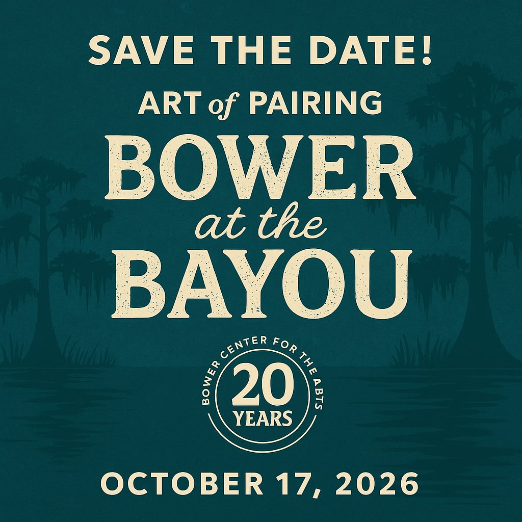 We’re thrilled to announce that the 2026 Art of Pairing, Bower Center’s signature fundraising event, will celebrate our 20th Anniversary with a theme inspired by our roots, Bower at the Bayou! This special evening on October 17, 2026, honors Dr. John Bower, whose generosity launched Bower Center for the Arts.