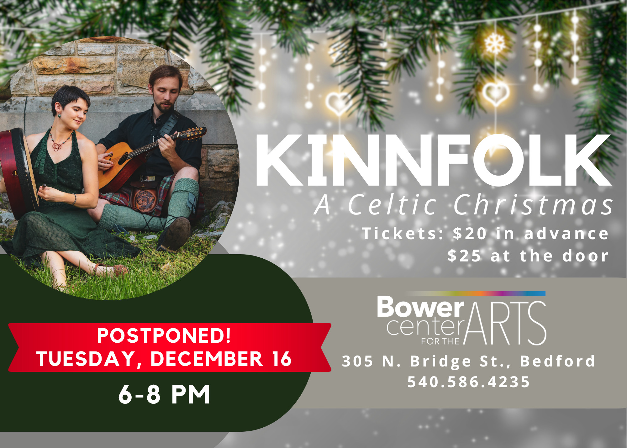 Due to inclement weather, the Kinnfolk performance has been postponed until Tuesday, December 16, 6-8 PM. Tickets are still available!
