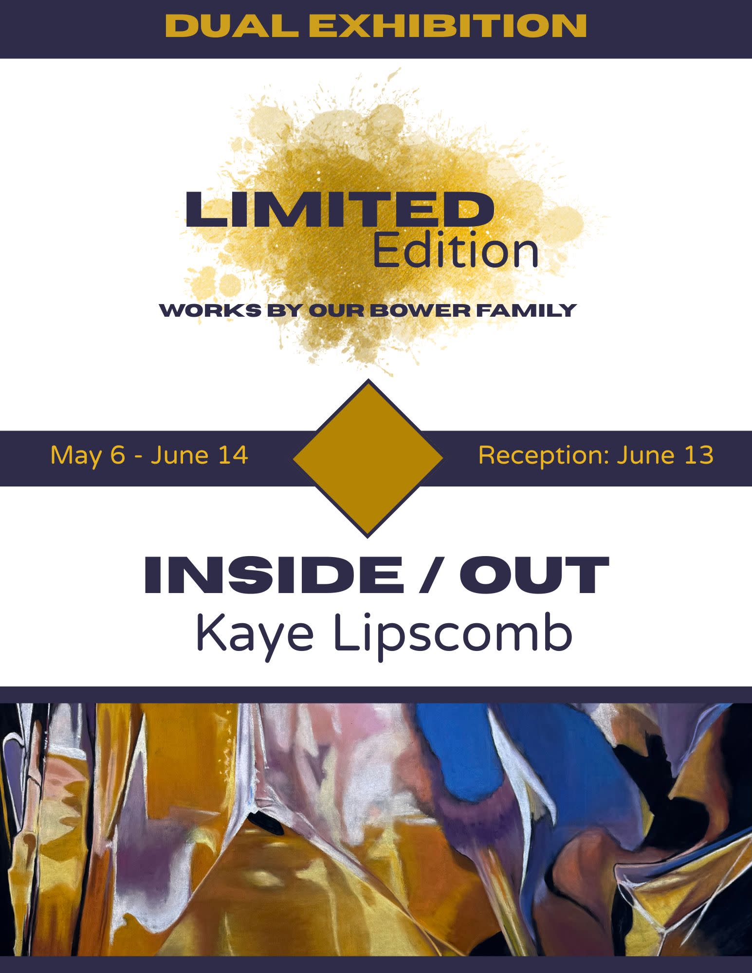 Join us for this artist reception on Friday, June 19th 2025 from 5-7pm. This is a joint reception for Kaye Lipscomb's solo show "Inside/Out" and the "Limited Edition," artwork by the Bower family. Kay will present remarks at 6:00pm. We will also be formally introducting our 2025 Suzie Viemeister Artist In Residence: Andrea Wise.
