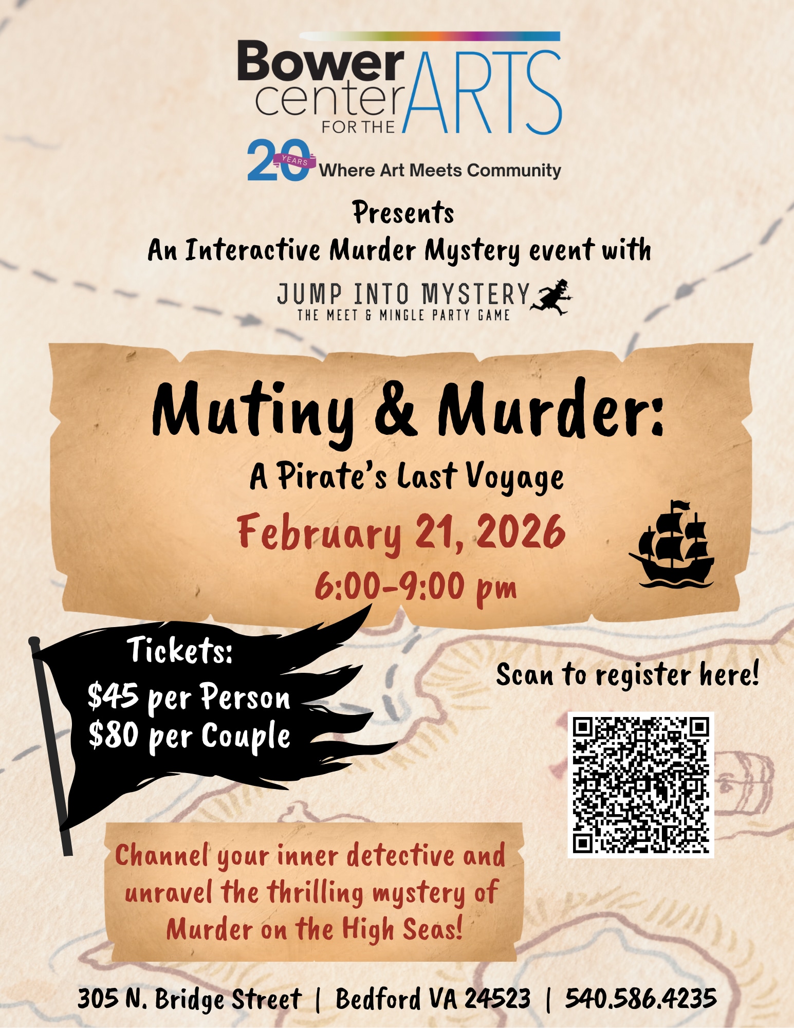 Join us February 21, 2026, at Bower Center for the Arts for an unforgettable evening of suspense, laughter, and swashbuckling fun!